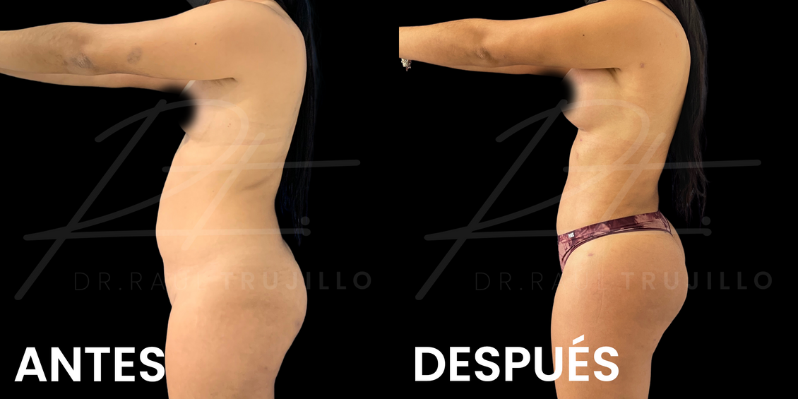 Dr. Raúl Trujillo uses advanced technologies such as BodyTite and Renuvion to improve liposuction. BodyTite uses radiofrequency to tighten the skin, providing firmer results and reducing sagging. On the other hand, Renuvion uses plasma energy to contract subcutaneous tissue, improving definition and remodeling the treated area. Additionally, Dr. Trujillo performs fat transfer to the buttocks and hips, a procedure that provides volume and shape to those areas.